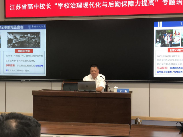10日下午,南京航空航天大学的王勤教授做了主题为《高校实验室安全视角看后勤治理》的讲座。安全是教育事业不断发展、学生成长成才的基本保障,王教授从实验室安全事故案例、致因分析、安全管理防控、新时代实验室安全要求和应急管理等五个方面,理论与实践相结合,运用丰富的案例阐释了安全的重要性,从实验室安全的角度,让校长们对后勤治理有了进一步的认识。