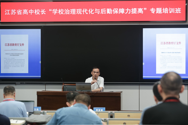 7月10-14日江苏省高中校长新课改分专题选学“学校治理现代化与后勤保障力提高”专题培训班在beat365中文官方网站北京东路校区E二楼阶梯教室正式开班,来自全省各地的40位校长齐聚南外,共同学习、探讨如何提高学校治理现代化和后勤保障能力。