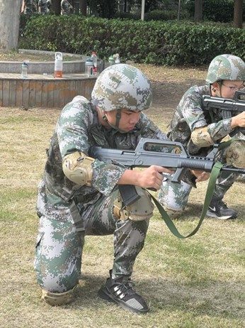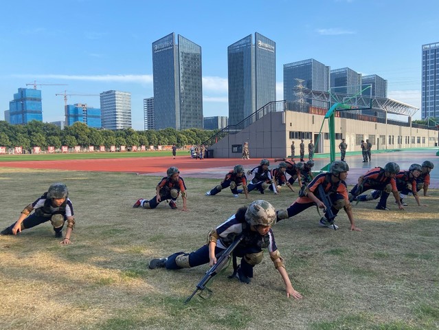 单兵战术训练组的成员虽然才经过几天的训练,但一个个已俨然像真正的战士一样能够在战场上冲锋陷阵、英勇杀敌。看,他们的姿势是那么端正,身体却又是那么灵活,即使血肉之躯被坚硬的地面磨伤磨破,也拼尽全力做好每个动作,显示出军人应有的不畏艰难、不怕牺牲的高尚品格。