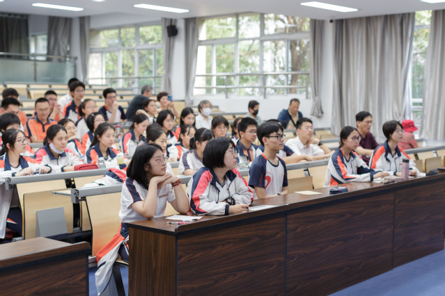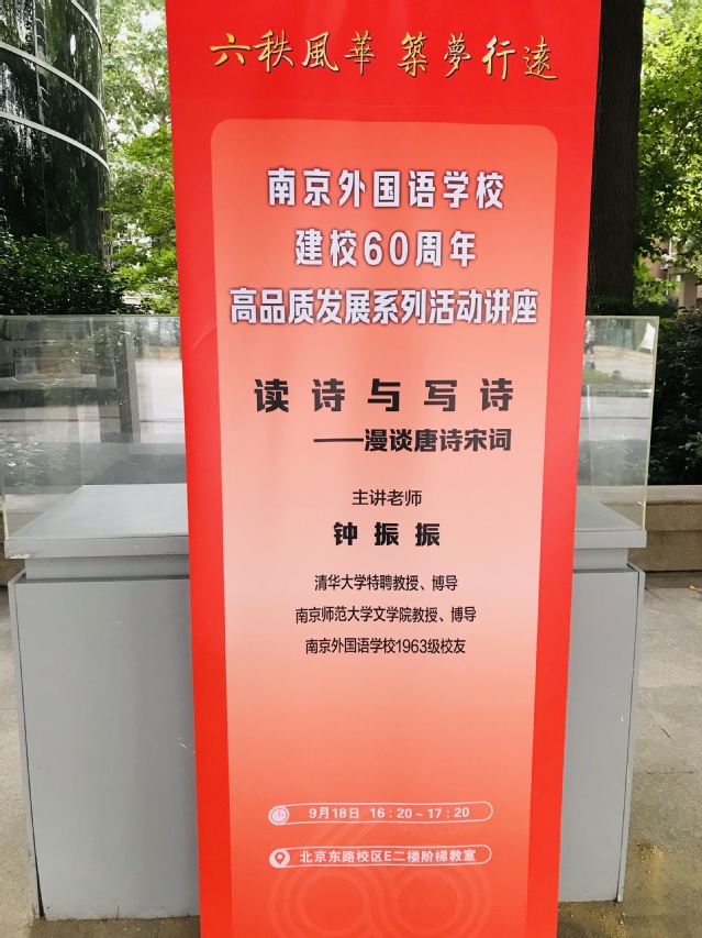 9月18日下午班会时间,高二年级和退休支部联手特邀南外杰出校友、南京师范大学文学院教授钟振振老师来校开讲座《读诗与写诗》。