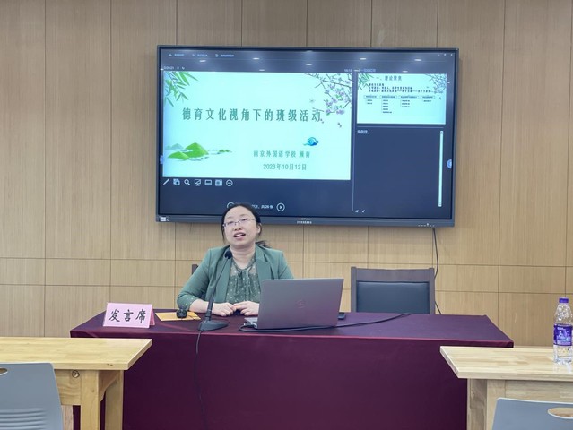 随后,代表团在七楼多功能厅,认真聆听了学生处张晓松主任有关南外德育文化建设的讲座。讲座围绕“立德树人、铸魂筑梦”,通过生动的案例和详细的数据,从培根铸魂、五育并举、价值引领、融合创新四个方面向代表团精彩展现了南外德育文化构建的亮点,渗透了“全面发展、自由成长”的办学理念。讲座后,顾青老师结合南外德育文化构建与代表团分享了班级文化系统构建的情况,提出了“起承转合”的构建思路。
