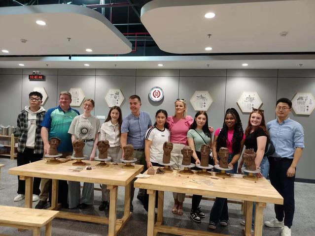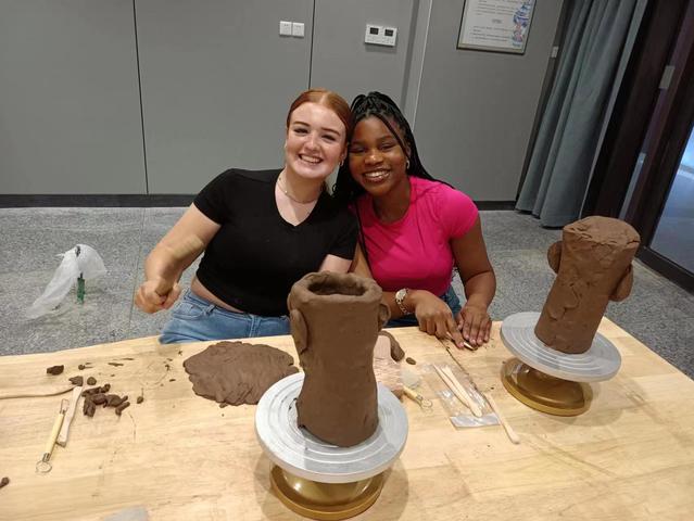 来访师生充分发挥想象力、创造力,在老师的指导和帮助下制作出别具特色的陶艺作品,作品将被展示在南外美术馆内