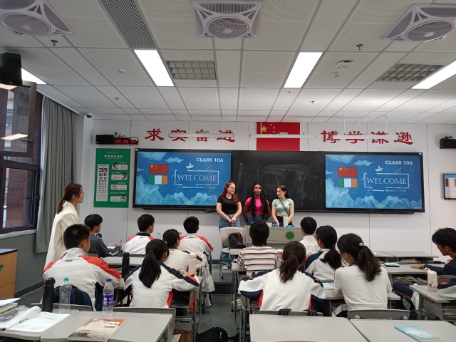 10月30日上午南京市教育局卢普新副局长、南京市教育局国际处俞峻处长、战全庆副处长、beat365中文官方网站林沁副校长与爱尔兰来访师生进行了座谈。卢局长对爱尔兰来访师生一行表示热烈欢迎,希望双方加强青少年之间的交流活动并祝愿来访师生此行收获满满。