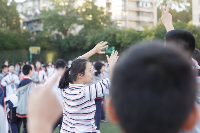 随后大家原地坐在操场上观看两场救援演示:现场灭火和云梯救人。两场演示具体地向师生们展示了求救、等待以及施救的完整过程。