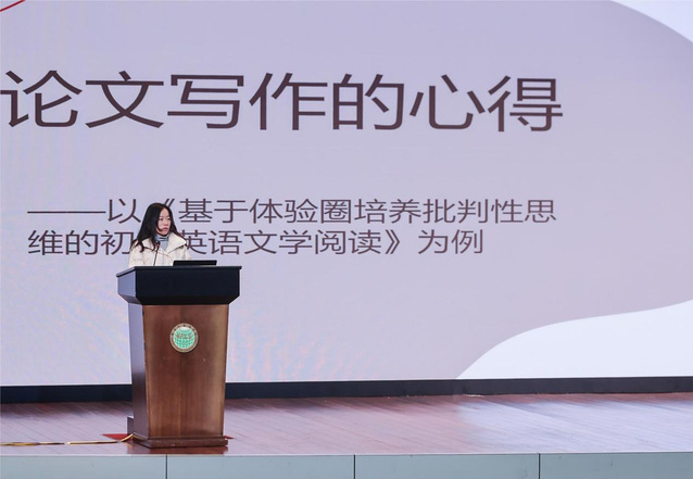 吴启虹老师以《论文写作的心得》为题,与大家分享了论文写作的动力与各阶段的注意问题。在她看来,一篇论文要经历解析问题、查找资料、文章规划、论文写作、修改总结等几个环节,她逐步在这个过程中发现教学实践中的真问题,开始通过真研究让自己言之有物,并反复打磨,最终淬炼成稿。她表示:写作让自己获得了发现问题的能力,培养了自身学术思维,也训练了表达能力与思维能力。