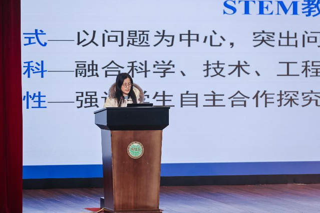 大会第三部分由6位不同学科的教师从论文、课题、课程基地建设等不同教科研角度进行交流汇报,分享他们发现的真问题与坚持的真研究。
