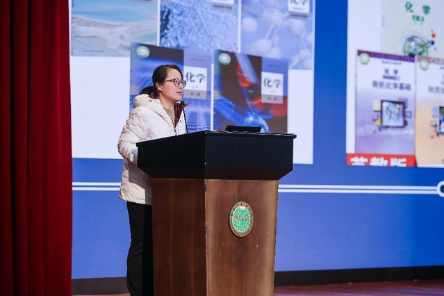 张玉娟老师以《从“教教材”走向“用教材教”》为题,分享了她是如何从不同版本的教材对比中发现问题,找准研究方向,拓展研究视角,独辟蹊径,最终成功在化学核心期刊上发表了自己的研究论文。张老师通过自身经验鼓励教师多开课、多赛课、多做实验,从中获取论文写作的素材;她建议教师多参加学科命题,钻研教材,找寻写作灵感;她也鼓励教师们多思考、多研究,提升专业水平与写作能力。