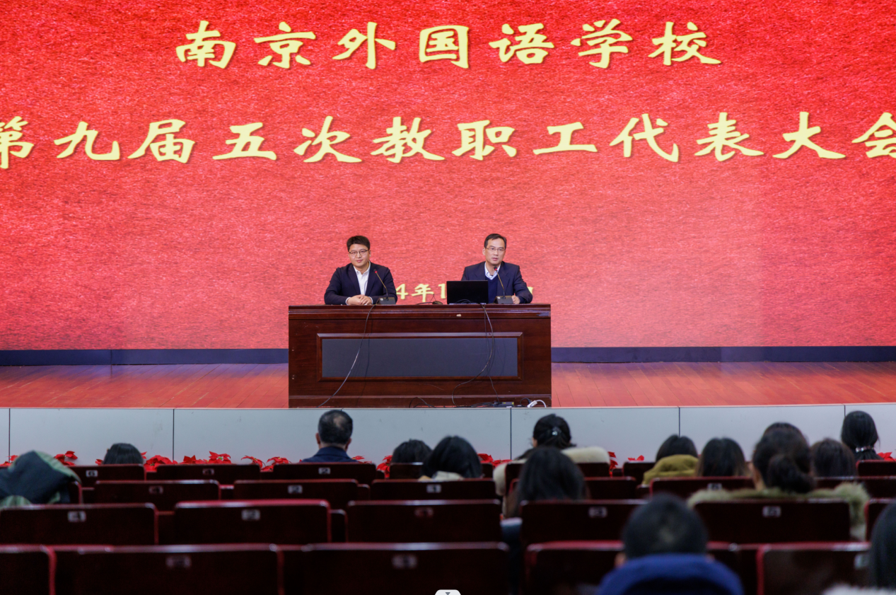 2024年1月26日下午,beat365第九届教职工代表大会第五次会议在北京东路校区报告厅举行,会议主要议题是审议《南京外国语学校章程(修订稿)》(下文简称《章程》)。