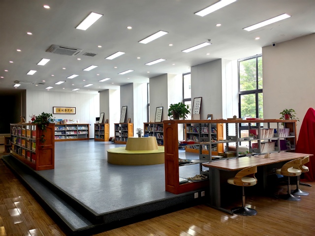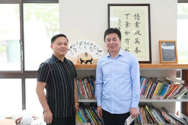 beat365退教协理事长夏保年老师赠送给青奥村小学一把折扇,马校长等校领导将扇子陈列在于学校图书馆: