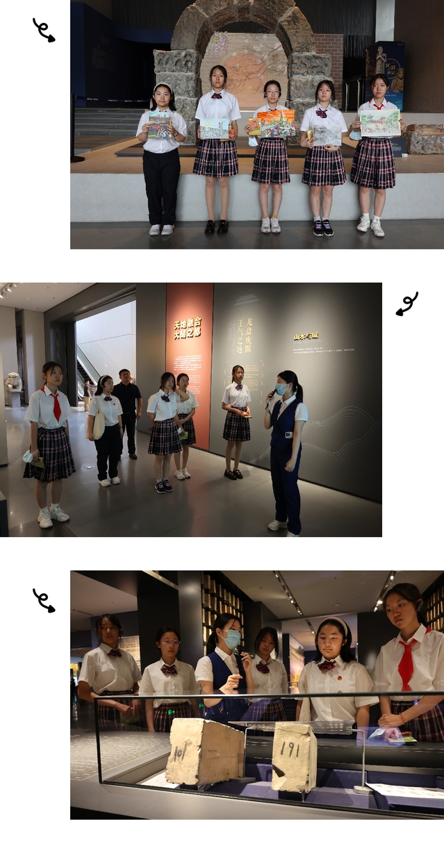 南外学子的作品让城墙文化有了更丰富的展现形式,城墙也开启了南外校外教育基地的新篇章。活动最后南京城墙博物馆向同学们赠送了纪念品,大家一起在明代琉璃拱门展品前合影。