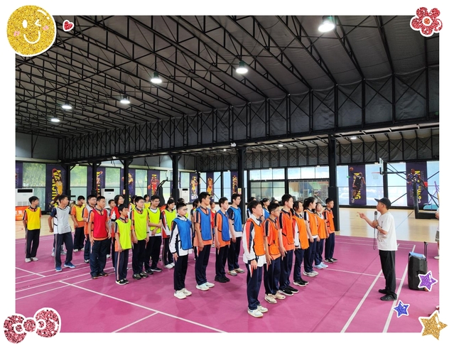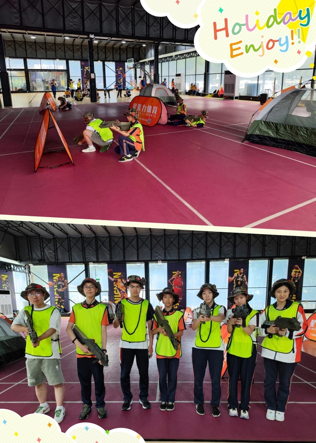 篮球馆内,同学们设计了队伍的名称、口号和队员造型并邀请一位现场的老师加入队伍,开启了第一项挑战——紧张刺激的真人CS活动。队员们迅速进行战略部署,利用篮球馆内布置的掩体,或隐蔽偷袭,或正面交锋,队友们默契配合,团结协作,胜利的欢呼声响彻球馆。