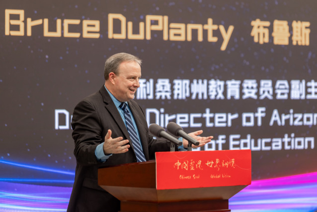亚利桑那州教育委员会副主任布鲁斯·杜普兰蒂表达了与中国教育界交流的兴奋之情,以及感受到的热情接待和富有成效的对话。他认为中美在教育领域有很多共通之处,且“同”远远大于“异”。他希望通过此次研讨会,加深合作,共同提升教育的有效性和创新性,帮助每一学生发挥其最大潜力。