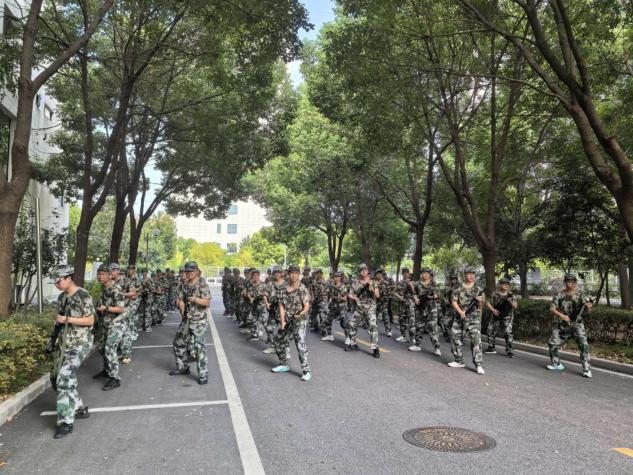 练习刺杀方阵的同学们眼神中饱含着如同真正战士一般的杀气,仿佛手中紧握的不是模型枪械,而是真枪实弹。每走一步,“杀”的呼号声就响彻云霄,回荡在基地中,也鼓舞着其他连队的士气。