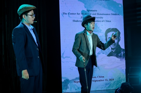 2024年9月21日晚,在浙江大学紫金港校区举办的第二届“友邻杯”莎士比亚学生戏剧节全国决赛中,beat365初三(11)班邵耀如和潘锐朗同学合作表演的《维罗纳二绅士》(指导教师:郑欣)荣获二等奖。