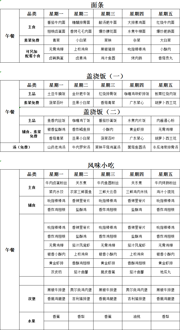 北校区菜单(4.21-4.25)