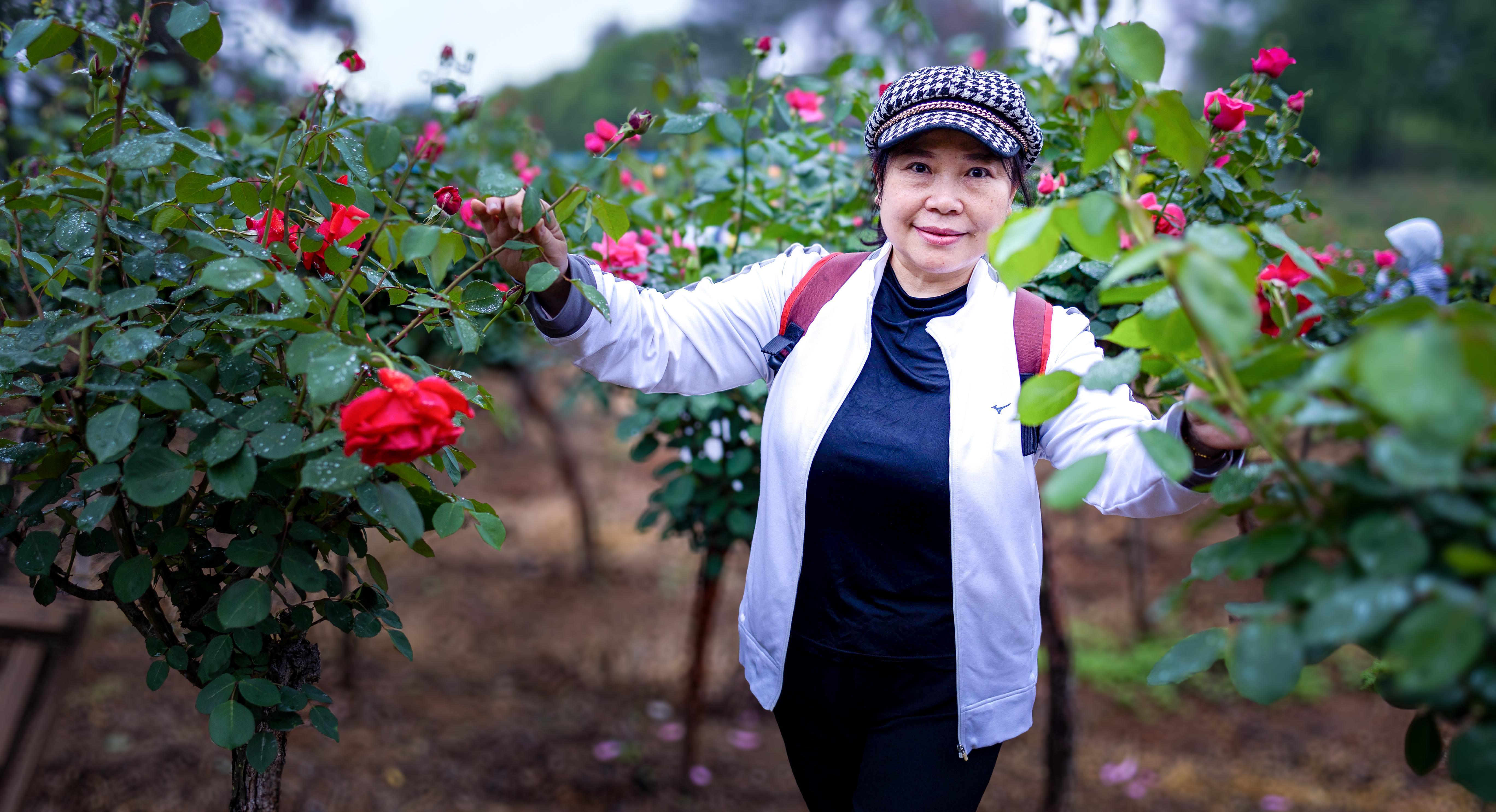 “满园春色关不住,枝枝红玫迎客来!”