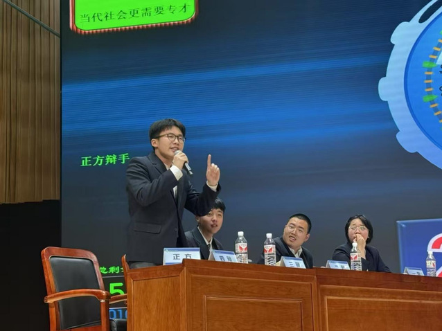 紧接着,进入正式辩论环节。本次“五四”辩论赛决赛的辩题是:当代社会更需要专才还是通才。在社会变革加速演进的今天,青年是应该深耕一域,以专业能力服务社会;还是大胆跨界融合,以开阔视野引领创新?正反双方就这个话题开展了激烈的论辩与攻辩,迸发出激烈的思维火花。特别是自由辩论环节,双方就“专”“通”的定义和时代意义展开多次拉锯,现场气氛更是紧张到了极点。其间双方相互交锋质询,你来我往,金句频出,十分精彩,献上了一场酣畅淋漓的思辨盛宴。在各位辩手发言间隙,同学们多次向他们投以热烈的掌声。随后,台下观众同学们又根据自己的思考和认知,向辩手们质询讨论辩论过程中未曾涉及的观点。正反方辩手从容应答,其中穿插分享了各自的思考历程,丰富了大家对于辩题的辨证理解。