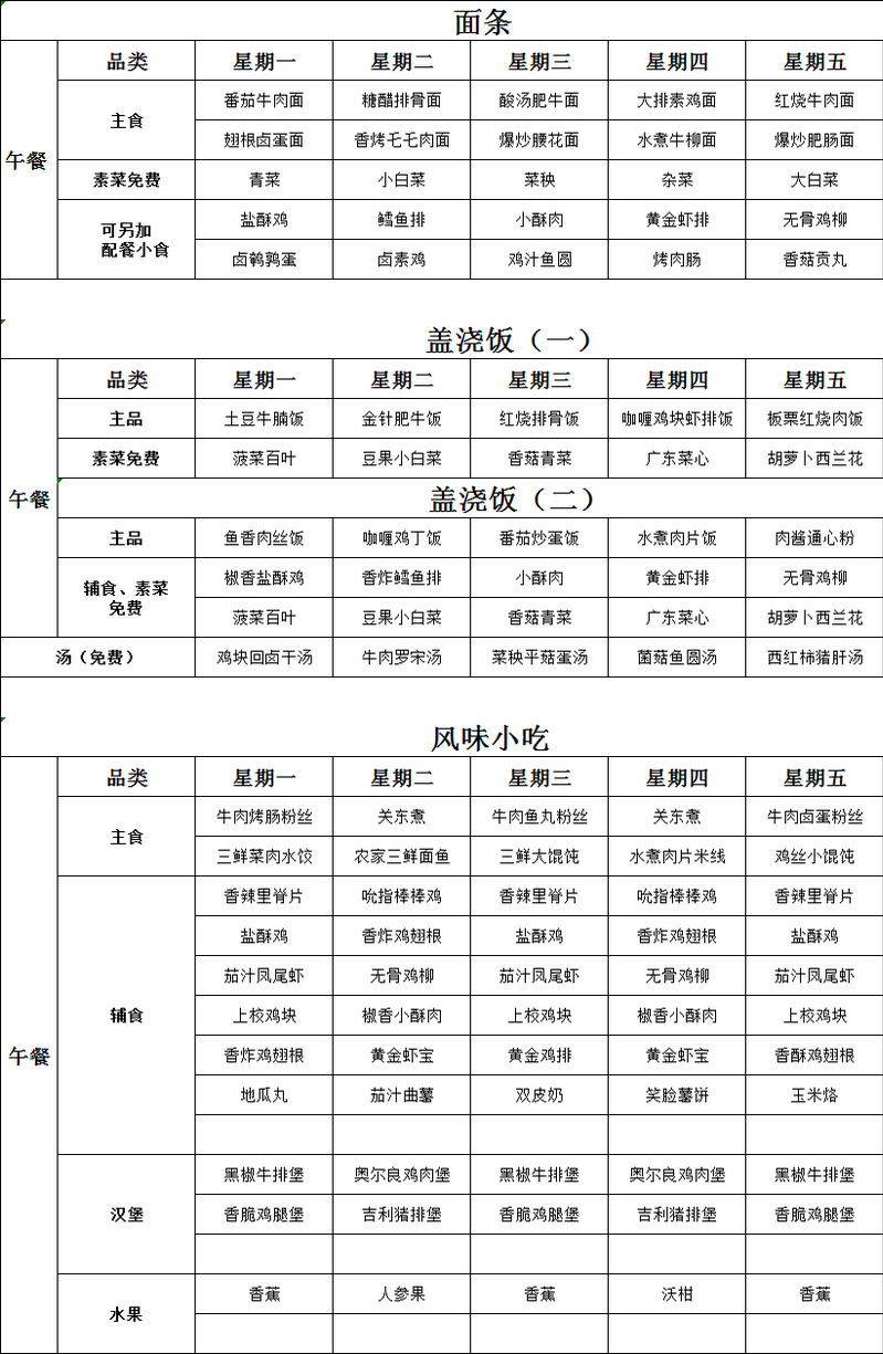 北校区菜单(5.19-5.23)