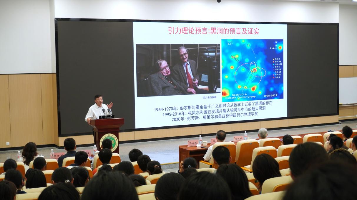 常院士讲座围绕“暗物质的发现、探测暗物质的必要性、暗物质的探测方法”三个核心方面展开。他以深入浅出的讲解方式,将深奥晦涩的天文学与物理学知识转化为通俗易懂的演讲内容,极大激发了同学们探索科学奥秘的兴趣。尤为可贵的是,常院士分享了他的团队研制暗物质粒子探测卫星“悟空号”的历程,介绍了“悟空号”的最新科研成果。“我们的悟空号是全世界最好的暗物质探测卫星”常院士表示。他以介绍该成果为契机,勉励同学们在日常学习与生活中,做好每一件小事,善于发现问题,积极解决问题。