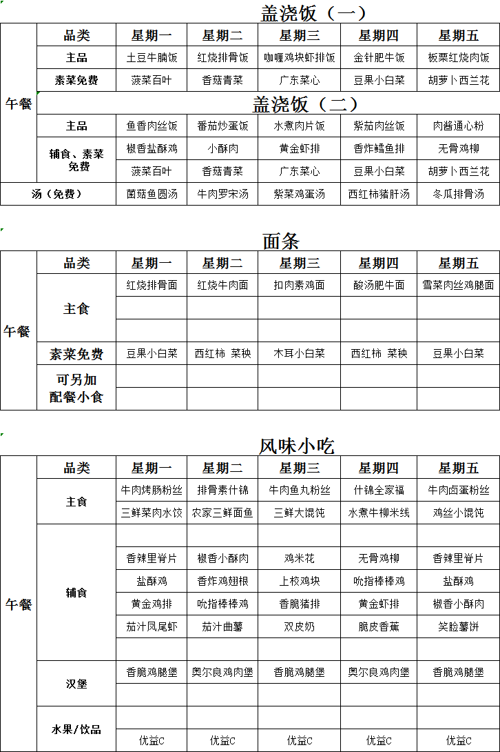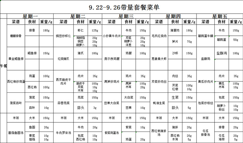 北校区菜单(9.22-9.26)